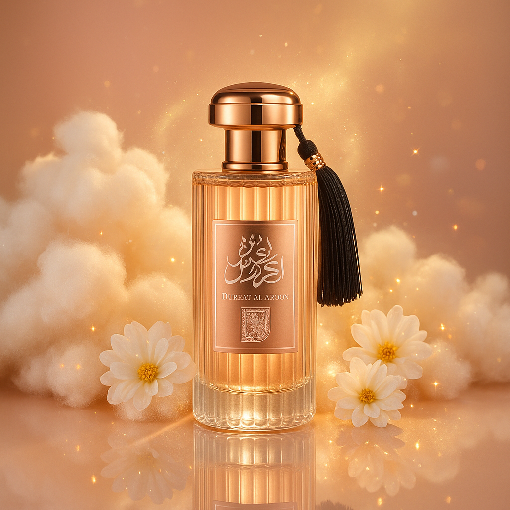 Durrat al Aroos é a joia doce do mundo árabe. Uma fragrância delicada e sofisticada que mistura doçura envolvente com conforto luxuoso, criando uma aura que conquista olhares e corações.